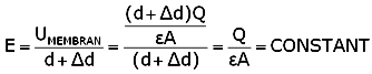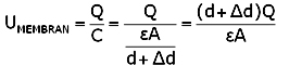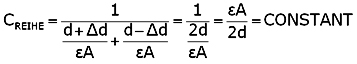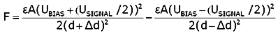 If you now calculate the force, acting on the diaphragm you will receive a value that is proportional to the signal voltage and depends no longer from the distance of the diaphragm. The relations of the capacities have also changed basicly. The effective capacity has changed from parallel to serial and is now constant.